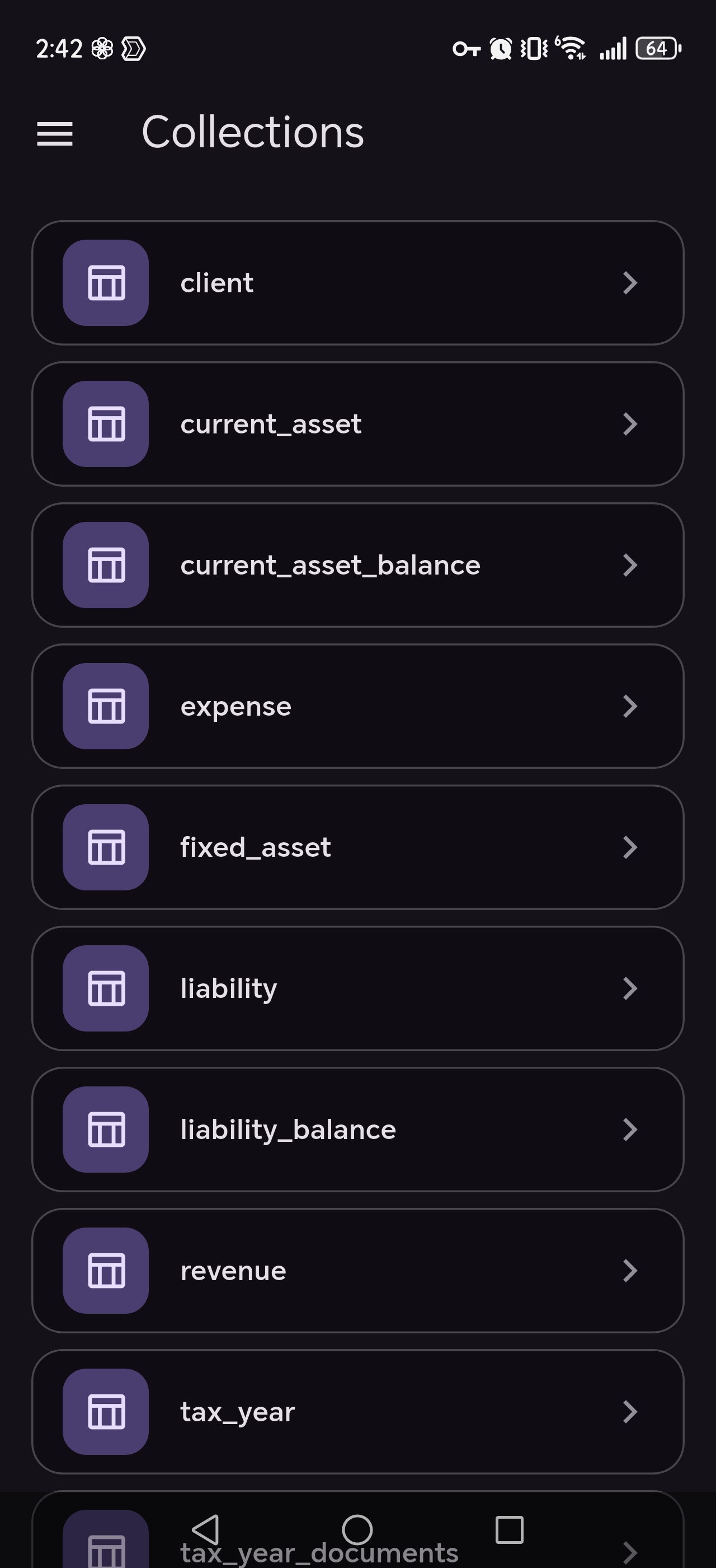 Track clients, tax years, assets, and liabilities. Build balance sheets with auto-calculation.